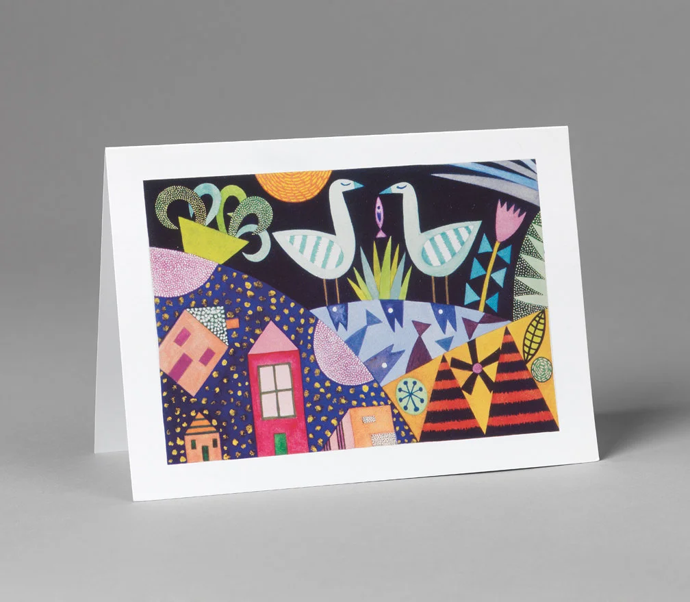 Single greeting card: 5" X 7" high quality digital print of original watercolor painting by Lisa Houck. Blank inside. Packaged with white envelope in plastic sleeve.